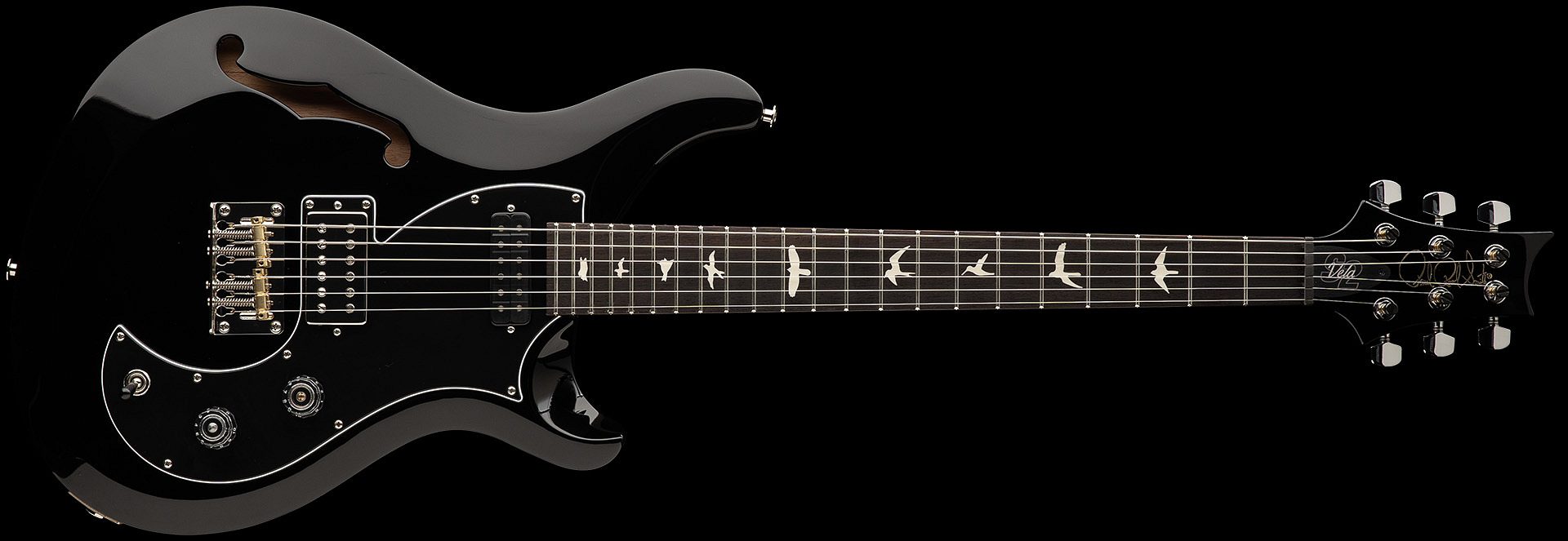 The S2 Vela Semi-Hollow is a vintage-inspired guitar with loads of personality and tonal textures. Its offset body shape is at once elegant and edgy, and the addition of a semi-hollow body and f-hole gives the Vela added attitude and resonance.
